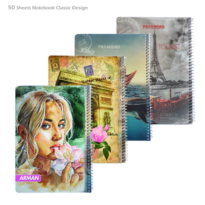دفتر50 برگ فنری جلد طلقی کلاسیک آرمان یک خط